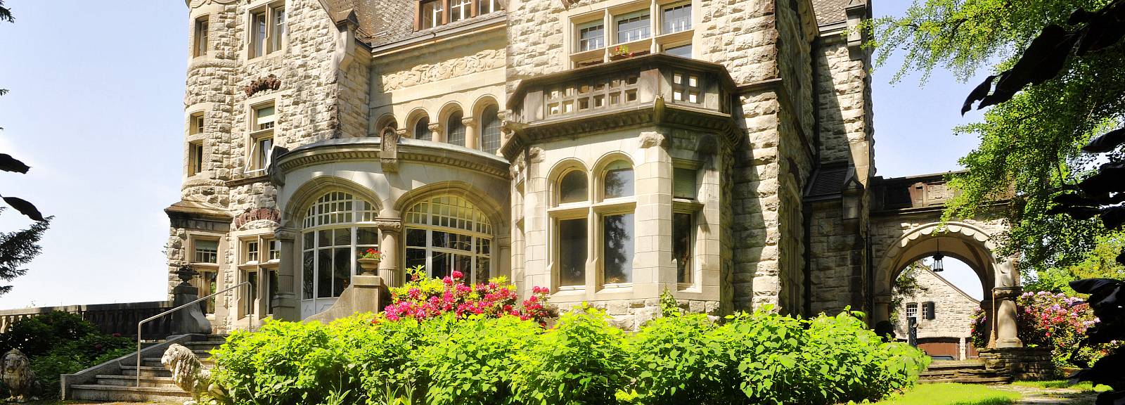 Der neugotisch angelegte Villa, und der somit uralte Stilelemente tradiert, erblühen vitale Formen der um das 19. Jahrhundert wohl modernsten Kunstrichtung, der des Jugendstils. Zudem ist der Stil wesenhaft der Natur verbunden, was zur Folge hat, dass der um die Villa angelegte Park der Architektur ganz anders antwortet als mit der üblichen Gartenromantik. Die mit Erkern, Balkonen und Veranden reich gegliederten Fassaden sind äußerst sorgfältig bearbeitet. Dem entspricht die aufwendige Gestaltung des Inneren der zweigeschossigen Halle und der nach ihr orientierten Repräsentations- und Wohnräume; alles ist von erlesener Qualität, Böden und Decken, Täfer und Türen Spiegel und Leuchten, glanzvoll von Raum zu Raum.